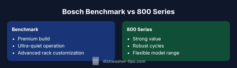 When homeowners start comparing high-end Bosch dishwashers, the phrase 'bosch benchmark dishwasher vs 800' often surfaces. The Benchmark line represents the brand's top-of-the-line engineering with luxurious features, premium materials, and the quietest operation. The 800 Series emphasizes a practical balance: strong performance, advanced sensors, flexible loading options, and compatibility with a broad range of kitchens. This article uses independent benchmarks and user-focused criteria to help you decide which model suits your kitchen, budget, and busy family life. Throughout, we’ll compare load performance across different dish types, cycle times, energy use, noise levels, ease of use, and long-term reliability. By anchoring the discussion in real-world usage—mixed families, holiday gatherings, and everyday dinners—we aim to translate spec sheets into tangible outcomes. The goal is to reveal not just what these machines can do, but how they feel to live with, day in and day out. According to Dishwasher Tips, the decision between these two premium lines often comes down to balancing ultimate performance against prudent value, space constraints, and service considerations. This context sets the stage for deeper analysis into cycles, customization, and maintenance needs.