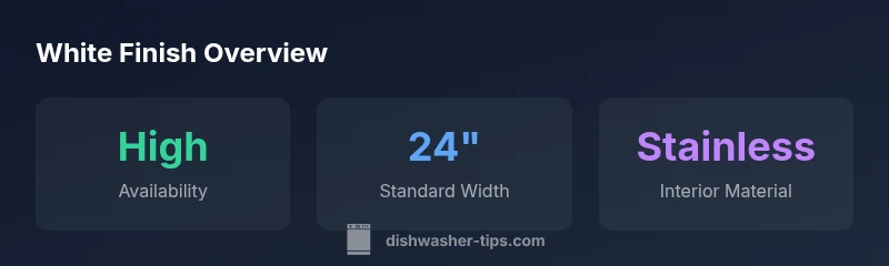White dishwashers are the most common finish for standard 24-inch models and are available across freestanding, built-in, and drawer styles. When shopping, expect white to be widely stocked by major brands, with interiors often stainless steel and features similar to stainless options. Color is typically the easiest to source and often the most affordable finish.