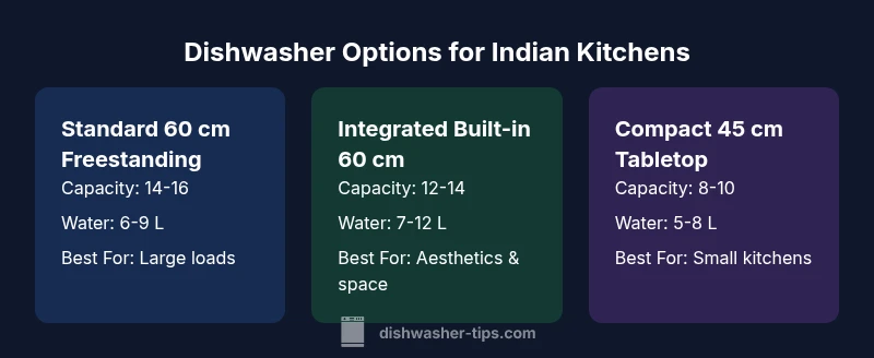 If you’re trying to answer which dishwasher is best for indian kitchen, you must start with the realities of Indian cooking. Indian kitchens generate heavy soil from lentils, curry masalas, and oil-rich dishes, and they often contend with hard water in many regions. This combination demands a dishwasher that can (a) accept a high-volume load, (b) remove stubborn spice and oil residues, and (c) resist mineral buildup over time. According to Dishwasher Tips, models designed for hard water with stainless-steel tubs, robust filtration, and quality spray arms typically outperform generic units in Indian households. Beyond cleaning, consider ease of use, reliable drying, and resilient materials that tolerate repeated exposure to oil and curry stains. The overall goal is to minimize pre-rinse and rewash while maintaining a compact footprint for Indian kitchens, which may include galley layouts or space-constrained dining areas.