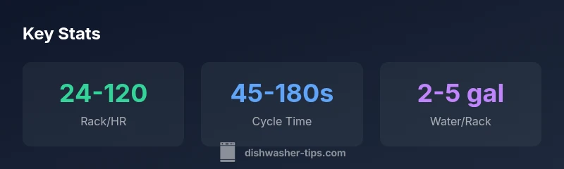 | Model Type | Rack Capacity (per hour) | Typical Cycle Time | Water Use per Rack |