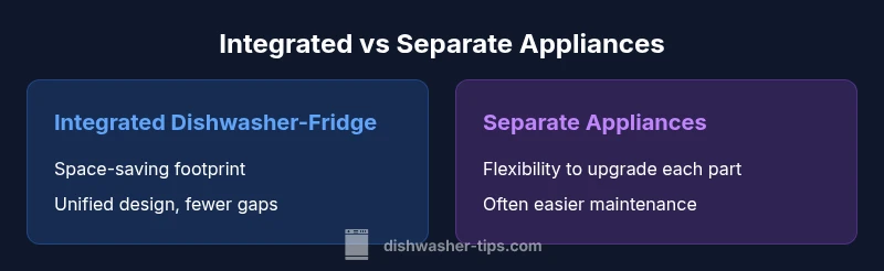 A dishwasher and fridge combo represents a niche category in kitchen design where washing and cooling functions share a single footprint or are closely integrated within a modular unit. In many layouts, the idea is to maximize floor space in apartments, tiny homes, or outdoor kitchens where every square inch counts. For homeowners and renters, the value proposition hinges on two core benefits: space savings and a cleaner, uninterrupted kitchen line. Implementing a dishwasher and fridge combo requires careful planning around utilities, airflow, and ventilation to ensure both appliances operate efficiently without overheating. In this context, the term "dishwasher and fridge combo" is used interchangeably with integrated appliance modules or compact kitchen bundles. According to Dishwasher Tips, the market for compact, combined units has grown slowly but steadily as urban kitchens become more efficient and design-forward. When evaluating a combo, you should consider not only footprint but also accessibility, door swing, and service availability. A well-designed combo can look seamless, but a poorly planned installation can create awkward gaps, unreachable shelves, or maintenance headaches that negate space gains.