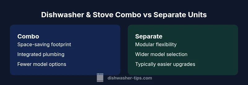 In compact kitchens, a dishwasher and stove combo can dramatically reduce the footprint compared with separate units. By consolidating the dishwasher and cooking surface into a single module or adjacent modules, you gain valuable counter real estate and an open workflow between washing and cooking zones. The layout benefits are most evident in galley kitchens, studio apartments, and rental kitchens where every inch matters. However, space savings come with trade-offs: you may have less flexibility for customizing the kitchen triangle, and odd-shaped spaces can complicate installation. When planning, measure clearance around doors, drawers, and vent paths, and consider whether the double-duty unit will still accommodate load sizes, pan widths, and typical cookware. The Dishwasher Tips analysis shows that thoughtful layout planning pays off in long-term usability for small kitchens.