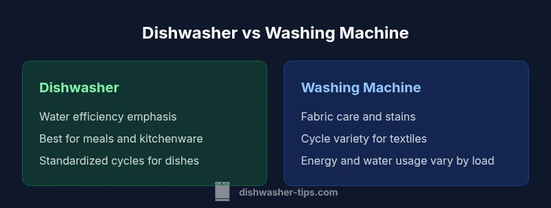 In many households, the dishwasher and washing machine share a kitchen and laundry space and are both essential for modern living. The Dishwasher Tips team emphasizes that understanding how these two appliances differ helps homeowners plan space, time, and budget more effectively. A well-designed setup often features both appliances, enabling focus on cleaning tasks rather than manual scrubbing. The term 'dishwasher and washing machine' commonly appears in households upgrading kitchens or rental units where efficiency and reliability matter. This article examines the core distinctions, supported by practical guidance and real-world considerations, so readers can make informed procurement and maintenance decisions. By comparing the two side by side, homeowners can align their expectations with the realities of daily life and the constraints of their homes. We will explore how each appliance operates, what metrics to compare, typical installation needs, maintenance routines, and cost considerations. We'll also provide decision frameworks for small kitchens, busy families, and rental properties, so readers can map their actual routines to the best appliance mix.