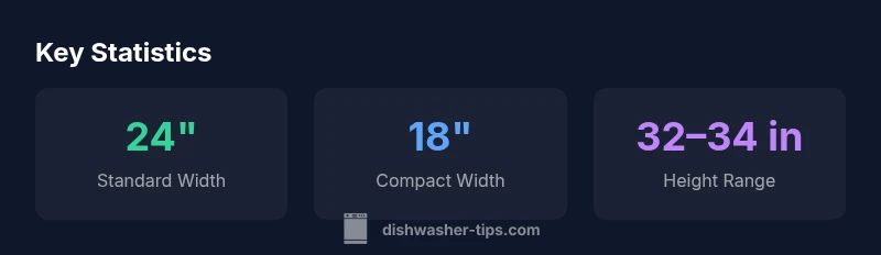 Dishwashers come in a few core configurations, each with a typical footprint. The standard built-in model is commonly 24 inches wide, designed to fit a standard cabinet opening and countertop height. Compact or narrow models start at 18 inches wide, offering an option for kitchens with shallow cabinets or tight layouts. Portable and countertop units bring additional flexibility, often with adjustable legs or semi-fixed bases to align with your countertop edge. When evaluating dimensions, compare the product specs against your cabinet layout, door swing clearance, and access to plumbing and electrical hookups. In practice, most households find that the 24-inch standard aligns with existing kitchen cabinetry, while apartments or small spaces may benefit from the 18-inch option. Remember to consider ventilation space around the dishwasher to maintain performance and longevity.