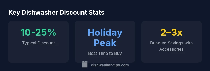 Dishwasher discounts are common during major sale events, typically ranging from 10% to 25% off MSRP, with larger promos on energy-efficient models and during holiday weekends. To maximize value, compare unit price, energy rating, warranty, and delivery/installation charges. Shopping with a plan and watching for bundle offers yields the best overall savings.