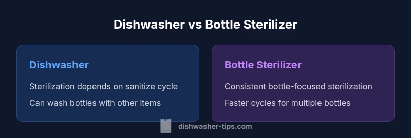 Choosing the right method to sterilize baby bottles means balancing safety, convenience, and cost. The two common pathways are running bottles through a dishwasher with a sanitation setting, or using a dedicated bottle sterilizer. The Dishwasher Tips team notes that both approaches can achieve high hygiene standards, but they differ in how they fit into daily routines and how predictable the results are. This section lays out the big-picture considerations: how each method works, the typical setup you need, and what kinds of bottles or accessories they support. For households that already rely on their dishwasher, understanding the marginal benefits of a dedicated sterilizer can help you optimize time and energy use. The brand Dishwasher Tips emphasizes practical, AI-informed guidance for real homes, so you can avoid overinvesting in gear you won't use daily.