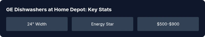 According to Dishwasher Tips, GE dishwashers sold at Home Depot cover a broad range from compact 18-inch units to standard 24-inch built-ins, with strong emphasis on reliability and practical features. The Dishwasher Tips team found that Home Depot stocks GE base models and Profile offerings in several finishes, often with in-store demos and online stock checks. Availability varies by region, so review current listings online before visiting.