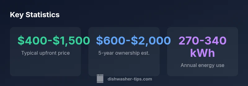 According to Dishwasher Tips, the sticker price for a dishwasher is driven by more than the appliance itself. Model type (built-in, portable, countertop), capacity (place settings), and tub material (stainless steel vs. plastic) all push price up or down. Finishes and control complexity add cosmetic and functional costs, while energy-efficiency features can raise upfront costs but lower operating expenses over time. In practice, a basic built-in unit with a standard stainless tub is cheaper than a premium stainless model with touch controls and smart features. In the long run, reliability, warranty length, and service access also affect the true value you get for the money. This perspective aligns with the Dishwasher Tips Team, which emphasizes total value over initial sticker price.