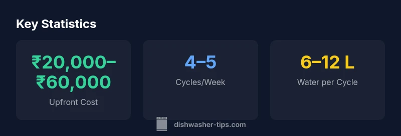 Cost is the dominant consideration for most buyers. Entry to mid-range models in India often fall in the ₹20,000–₹60,000 bracket, with installation and plumbing typically adding another ₹2,000–₹8,000 depending on the home’s existing setup. Operating costs hinge on local electricity tariffs and water rates. In general, per-cycle energy use can range from about 0.5 to 1.2 kWh, and water usage per cycle is typically between 6 and 12 liters, depending on settings and load. While you might save on labor and detergent, the ROI depends on how often you run cycles. Dishwasher Tips analysis highlights that households with higher weekly dish loads reach payback faster, especially when they can leverage eco or quick cycles to minimize running time.