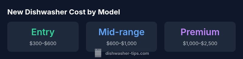 The price you pay for a new dishwasher is driven by model type, features, and efficiency, and the sum of these factors creates the true cost of ownership. According to Dishwasher Tips, the headline figure—the new dishwasher cost you see on the sticker—can vary widely based on whether you choose a basic freestanding unit, a contemporary built-in, or a designer drawer model. Entry-level freestanding models may cost only a few hundred dollars, while mid-range units offer improved reliability and capacity, and premium built-ins with smart controls and energy-efficient motors can push costs well into the thousands. In practice, expect 1) model type (freestanding, built-in, or drawer), 2) capacity (how many place settings), 3) energy efficiency rating, 4) finish and hardware, and 5) optional features (soil sensors, Wi-Fi connectivity, adjustable racks) to be the main levers shaping the price. The interaction of these elements sets the new dishwasher cost for a typical household. Buyers should match features to daily use: if you wash many pots or run multiple cycles, a larger-capacity or more efficient model may be worth the higher upfront price. When budgeting, include potential installation costs and delivery charges, which can add several tens to hundreds of dollars to the upfront price.