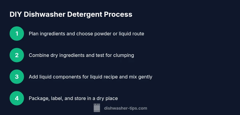 Dishwasher detergent diy refers to crafting your own cleaning agent for dishwashers from everyday pantry ingredients. This approach can reduce packaging waste, tailor cleaning power to your water and loads, and lower ongoing costs over time. The Dishwasher Tips team notes that DIY detergents can be effective for everyday dishwashing when made with safe, food-grade materials and stored properly. Whether you prefer a powder or liquid format, understanding the basics helps you avoid common mistakes and maximize results. This section grounds your approach, explains the benefits, and sets expectations for what you’ll accomplish with two reliable recipe styles.