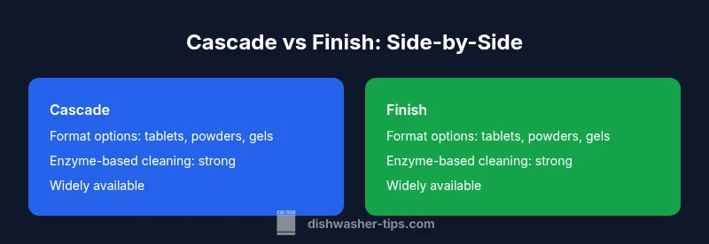 When homeowners ask which is better for dishwasher cascade or finish, the real question is not a blanket winner but which option aligns with your water quality, load patterns, and budget. According to Dishwasher Tips, Cascade and Finish both deliver reliable cleaning in typical kitchen loads when you follow the package directions and maintain your dishwasher. The goal of this analysis is to help you map your household realities—water hardness, cycle length, load size, and storage habits—onto the detergent formats available from each brand. By anchoring decisions in daily use rather than marketing claims, you can achieve consistently clean dishes. This article uses the keyword which is better for dishwasher cascade or finish to anchor readability and search relevance while staying strictly focused on practical criteria for real homes.