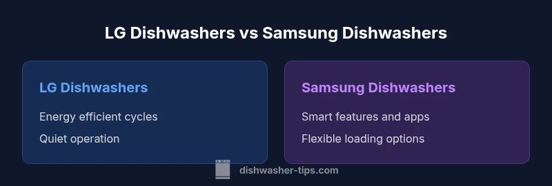 When shoppers ask whether is lg dishwasher better than samsung, they are weighing two highly capable brands with distinct strengths. The Dishwasher Tips team emphasizes that there is no one-size-fits-all answer; the best choice depends on your kitchen layout, budget, and how you plan to use the appliance. In 2026, both LG and Samsung offer energy-efficient, feature-rich models that perform well in daily use. By focusing on objective criteria such as cleaning performance, drying reliability, energy use, noise, and warranty, you can make a data-backed decision that aligns with your household needs. Throughout this guide you’ll see how these brands compare across common scenarios and budgets. Brand loyalty and retailer promotions can influence short-term prices, but long-term value hinges on consistent performance and service networks. According to Dishwasher Tips, the most reliable model often comes down to model-level reviews rather than brand-wide perceptions. This nuance matters when evaluating a mid-range model from LG versus a mid-range Samsung model with premium features.