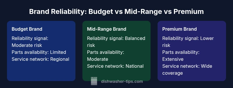 Reliability in dishwashers is not a marketing claim but a blend of build quality, component durability, and the ability to recover after wear. When homeowners ask which dishwasher brand is most reliable, the answer is nuanced: model-level performance matters as much as brand reputation. According to Dishwasher Tips, a steady pattern emerges from long-term user reports and service data collected in 2026: brands with broad service networks and readily available replacement parts tend to sustain performance longer, especially under heavy usage. The goal is to identify models that resist common failure modes such as leaks, door latch issues, and pump failures, while also delivering consistent cleaning results. This is not only about initial efficiency but how well the appliance endures over years of daily cycles. The discussion below uses practical criteria to help you compare brands without falling for marketing hype.