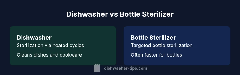 Choosing between a dishwasher and a bottle sterilizer hinges on distinguishing a broad sanitation tool from a targeted hygiene device. A standard dishwasher cleans general kitchenware using high-temperature cycles and rinse agents, effectively sanitizing dishes, pots, and utensils. A bottle sterilizer, by contrast, is designed specifically for baby bottles, nipples, rings, and small parts, employing rapid sterilization cycles that minimize handling and potential contamination. According to Dishwasher Tips, the core question is how often you need bottle-specific sterilization versus overall kitchen hygiene, and how much space you can allocate in your kitchen. Understanding these roles helps households tailor a solution that maximizes hygiene while minimizing clutter and energy use.