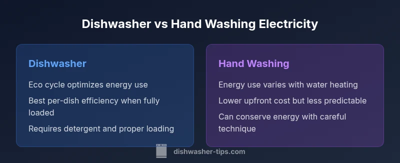 Dishwasher vs hand washing electricity: In most homes, a modern dishwasher uses less electricity per dish when it is fully loaded and uses an eco cycle, compared with hand washing where hot water heating and long scrubbing can raise electricity use. The overall energy win depends on load size, cycle choice, and water temperature. This article compares electricity use and offers tips to maximize efficiency.
