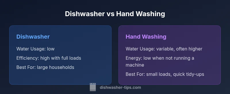 From an environmental perspective, dishwashers typically offer efficiency advantages when used correctly, especially if you run full loads and select eco modes. Hand washing can use more water per dish when performed with a running faucet, but it may incur lower energy costs if you avoid hot-water heating for long periods. Over time, the total cost of ownership for a dishwasher includes upfront purchase, installation, and occasional maintenance, while hand washing costs are largely time-based and tied to water heating and soap usage. The Dishwasher Tips team observes that households optimize outcomes by aligning routines with load patterns, food-wiberage, and daily schedules.