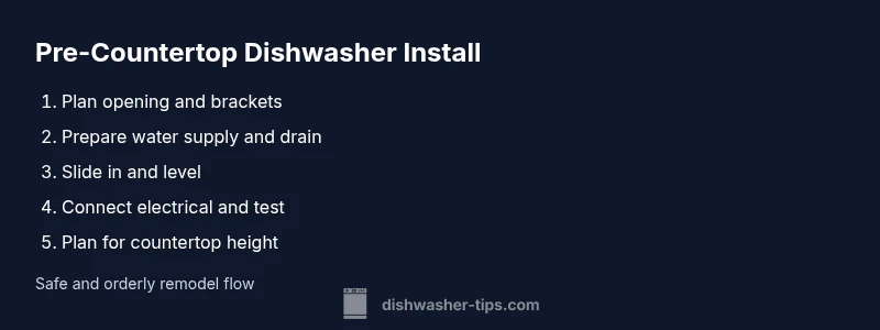During a kitchen remodel, the dishwasher is often rough-in installed before the countertop goes in. This approach simplifies plumbing, wiring, and alignment with cabinetry. It allows the installer to test clearances and levelness with the actual machine reference while the cabinet system remains accessible. If you’re replacing an old unit in existing cabinetry, coordinating with countertop removal or reinstallation can prevent rework later. While this method works in many scenarios, it requires careful planning to ensure final height matching and trim pieces fit correctly for a clean, professional look. According to Dishwasher Tips, this sequence is common when forward-facing alignment and toe-kick accuracy are priorities in a multi-stage remodel.