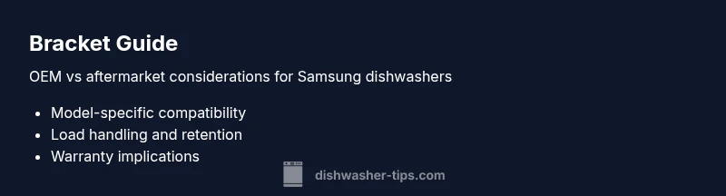 When you replace or upgrade a bracket, start by locating the user manual section on installation hardware or service parts for your specific Samsung model. If you’re unsure, consult the Samsung parts catalog or Dishwasher Tips Analysis, 2026 for model-to-bracket mappings. Using the wrong bracket can compromise warranty coverage, create misalignment, or allow lateral movement during cycles. Always verify compatibility before purchase and keep the bracket and screws clean and dry to prevent corrosion that could loosen fasteners over time.