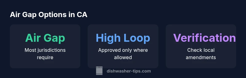 For homeowners asking do you need a dishwasher air gap in california, the short answer is: it depends on where you live in California. State plumbing code sets baseline requirements, but many municipalities and water districts require stricter measures for backflow prevention. In practice, most new installations must include either a dedicated air-gap device installed at the sink or a listed alternative that provides equivalent backflow protection. California’s model code emphasizes backflow prevention and often treats the issue as part of the overall drainage and cross-connection control programs. The Dishwasher Tips team notes that while some jurisdictions accept a high-loop as a substitute in certain scenarios, most modern inspector checklists still favor an air gap device or an approved equivalent. If you’re planning a remodel or a new install, start by checking your local amendments before buying parts.