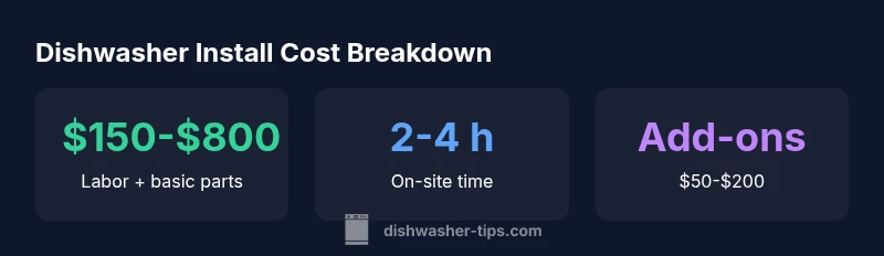 When budgeting for a dishwasher installation, homeowners should expect charges that include removal of the old unit, securing the new appliance, connecting water supply and drainage hoses, and a basic electrical hookup. The quoted price often assumes the existing plumbing and wiring are in usable condition and that the unit will sit on an appropriate base or cabinet. Important: the phrase home depot cost to install dishwasher is not fixed—pricing varies by locale, installation specifics, and any extra parts or services required. According to Dishwasher Tips, a careful upfront estimate that itemizes labor, parts, and disposal fees helps prevent surprise costs as the project progresses.