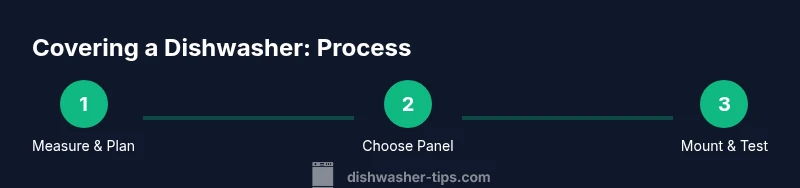 According to Dishwasher Tips, you can cover a dishwasher with a custom front panel or cabinet door to blend it with your kitchen. This guide walks you through measuring, choosing panels, and mounting hardware. You'll need basic tools, a panel kit or fabricating supplies, and careful attention to manufacturer clearance requirements for safety and airflow.