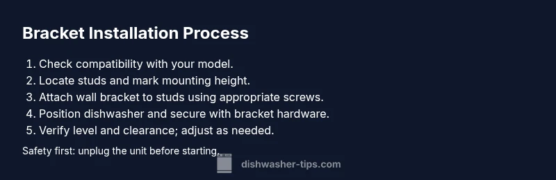 A successful installation follows a logical sequence: verify compatibility, locate anchor points, mark bracket positions, install the wall bracket to the wall, position the dishwasher, attach the dishwasher to the bracket, and perform a final alignment check. This overview helps you plan the project and avoid rework. The key is to maintain proper alignment to prevent door misalignment and stress on hoses.