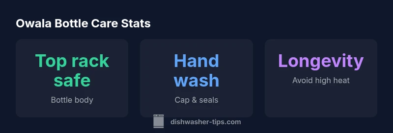 Understanding whether are owo la dishwasher safe starts with recognizing that care guidance varies by model and component. According to Dishwasher Tips, the safest approach is to treat the stainless bottle body as more dishwasher-tolerant on the top rack, while the cap, straw, and seals demand gentler handling. This distinction matters because repeated exposure to high heat and aggressive brushes can degrade seals and affect performance over time. When evaluating care options, begin with your model’s manual, and cross-check official recommendations before running a cycle. The overarching goal is to minimize stress on the gasket and plastic elements without sacrificing cleanliness. For homeowners and renters who routinely clean bottles, following official guidance reduces damage risk and preserves insulation performance. The phrase are owala dishwasher safe is often model-dependent, so the first step is to locate the care section in your product documentation and any online support articles. Tablet or phone access makes this step quick and practical, which is why a cautious cleaning plan is worth the extra minute.