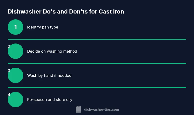 Discover whether you can dishwasher-clean cast iron, the risks involved, and how to clean and re-season safely. Expert guidance from Dishwasher Tips to protect your cookware.