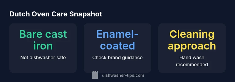Learn whether a Dutch oven can go in the dishwasher, with guidance for bare cast iron vs enamel-coated pots, plus practical hand-washing methods to protect seasoning and enamel.