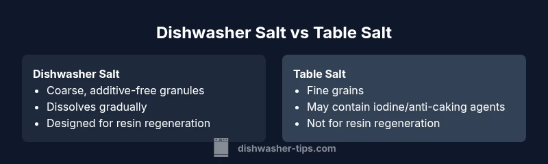 Discover how dishwasher salt differs from table salt, why it matters for hard water, how to choose and use it correctly, and common myths. A clear, practical guide from Dishwasher Tips.