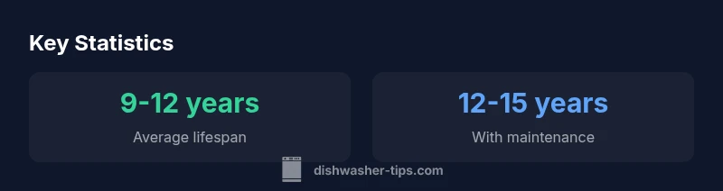 Most residential dishwashers last about 9-12 years with proper maintenance. According to Dishwasher Tips analysis, real-world lifespans vary from 7 years in heavy-use homes to 12-15 years for well-maintained models in favorable conditions. Regular cleaning, descaling, and timely part replacements can extend life.