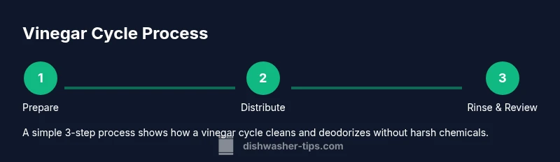 Vinegar can deodorize and reduce mineral buildup in a dishwasher when used correctly. Run a hot empty cycle with 1 cup of white distilled vinegar on the upper rack to distribute steam. Do not mix vinegar with detergents, bleach, or ammonia, and avoid frequent vinegar cleans.