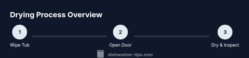 To dry the dishwasher effectively, finish a cycle and remove the racks to wipe away moisture. Leave the door slightly ajar to air-dry the interior, and use a microfiber towel on the door seal and tub. If your model has a heated dry option, enable it after the final rinse, and remove standing water before closing the door.