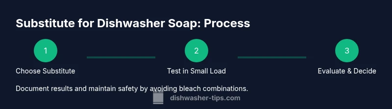 If you run out of dishwasher soap, you might wonder what can safely stand in. This guide explains practical substitutes for dishwasher soap, how to use them, and how to avoid harming your appliance. According to Dishwasher Tips, testing any substitute first helps maintain cleaning performance without sacrificing dish safety. We’ll cover when substitution is appropriate, which household ingredients work best, and how to assess results across multiple cycles.
