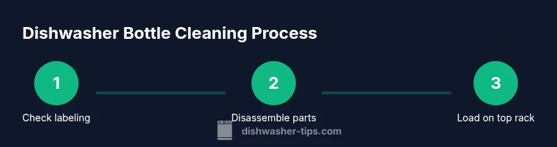 According to Dishwasher Tips, many families rely on the dishwasher for bottle cleaning, but safety depends on labeling and components. Start by checking the bottle's packaging for dishwasher-safe icons and heat tolerance. Some bottles are designed exclusively for hand washing due to materials like glass, silicone, or polycarbonate that can warp or leach additives at high temperatures. In general, if a bottle states dishwasher-safe and heat-tolerant through a sanitize cycle, you can consider dishwasher cleaning. Always remove nipples, rings, caps, and valve pieces; these small parts often include rubber or silicone that can degrade under heat. The dishwasher's top rack does not guarantee uniform temperatures across every cycle, so choose cycles with a dedicated bottle-wash option if your model offers one, or enable a sanitize option on a hot-water cycle. After washing, air-dry on a clean rack away from the spray wand. If you cannot confirm dishwasher-safety, stick to hand washing and separate sterilization.