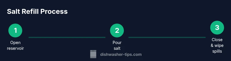 For households with very hard water or fluctuating supply, plan periodic checks to avoid running out mid-cycle. If you’re unsure how often to refill, set a routine: check after every few washes or around calendar checkpoints, depending on usage. The goal is to prevent salt from running dry while avoiding spills that create a cleanup task. This guidance aligns with the practical recommendations from the Dishwasher Tips team.