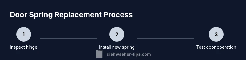 Replacing a dishwasher door spring typically involves removing the door or the hinge cover to access the spring, disconnecting the old spring from its anchor, and installing a model-matched replacement. You will need the correct replacement spring kit designed for your model and a few common hand tools. After installation, reassemble the door and test operation. Plan on a hands-on session that takes about an hour or more, depending on your skill level and model complexity. Following this guide can help ensure a safe, effective repair without calling a technician.