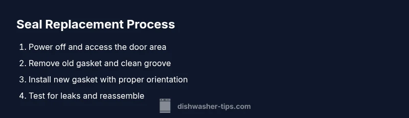 You will learn how to replace a dishwasher door seal (gasket) to stop leaks, what tools you need, and how to test your installation. This guide covers model-free tips, safety precautions, and a step-by-step replacement workflow. According to Dishwasher Tips, using the correct gasket and careful alignment are key to a lasting seal.