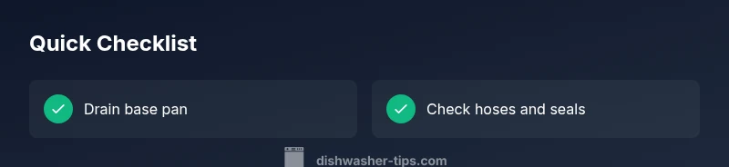 Unplug the dishwasher from the wall outlet and switch off the circuit breaker to eliminate any electrical risk. Let the machine cool if it has been running. This initial safety step protects you while you inspect the base area.