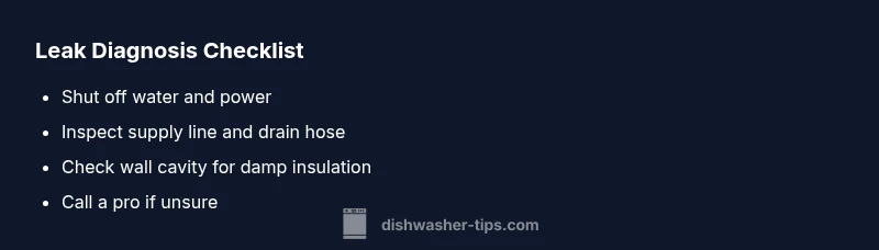Water from a malfunctioning dishwasher can move through wall cavities, insulation, and framing and eventually show up on ceilings in adjacent rooms. In most homes, leaks originate in the supply line, drain hose, or gaskets behind the unit. If a connection is loose or a hose is cracked, tiny leaks can be invisible for a long time, but the water eventually finds a path to the ceiling. Dishwasher Tips analysis shows that many ceiling leaks traced to ordinary wear, improper installation, or delayed maintenance rather than dramatic bursts. Understanding this pathway helps you inspect the problem safely and efficiently.