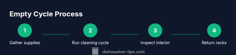 People often ask can you run a dishwasher with nothing in it, especially when they are trying to fix odors or descale the interior. The answer is nuanced: occasional empty cycles can help flush out residues, clear the spray arms, and reset sensors after a heavy load. According to Dishwasher Tips, enthusiasts and technicians alike use this tactic sparingly as part of routine maintenance, not as a substitute for regular cleaning. When you run an empty cycle, you are using hot water and energy without any dishes to clean, so the benefits must be weighed against the cost to utilities and wear on seals, pumps, and the door latch. Some users also report improved deodorizing and a more consistent spray pattern after an empty cycle. However, this should be a targeted action, not a daily habit, and it should be paired with periodic interior cleaning and filter maintenance.