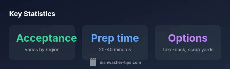 If you're planning to responsibly dispose of an old appliance, you might wonder can you take dishwasher to recycling centre. The short answer is generally yes for most municipal programs, but acceptance policies vary by jurisdiction. According to Dishwasher Tips, the best first step is to verify with your local facility about whether they accept bulky household appliances like dishwashers, and whether you need an appointment or to use a special drop-off window. Even when accepted, you may be asked to remove doors or disable certain safety features before handing over the unit. Understanding local rules helps you avoid a wasted trip and ensures the appliance is prepared for safe processing. In many communities, the dishwasher is treated as either bulk metal or electronic waste, which means it can be recycled rather than sent to a landfill. The key is to start with a quick call or check of the city’s waste program website. This approach aligns with best practices recommended by the Dishwasher Tips team, which emphasizes confirming acceptance and preparing the unit properly before disposal.
