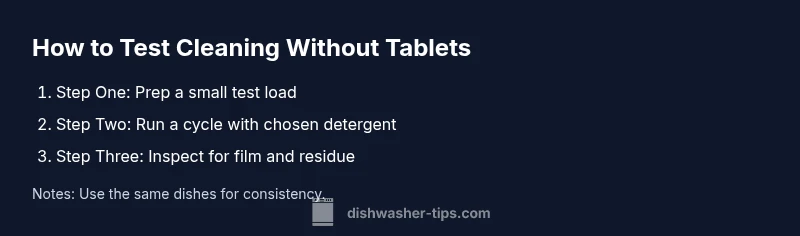 Start by choosing a small, representative load and a compatible non‑tablet detergent. Pre‑scrape plates and bowls to remove obvious food debris, then run a full cycle at the manufacturer‑recommended temperature. After the cycle, inspect for residue, film, and drying quality. If the results aren’t satisfactory, adjust dosing and cycle settings and repeat. Keep a simple log of what you used, what you loaded, and the outcome. Over several cycles you’ll identify a reliable tabletless configuration for your home.
