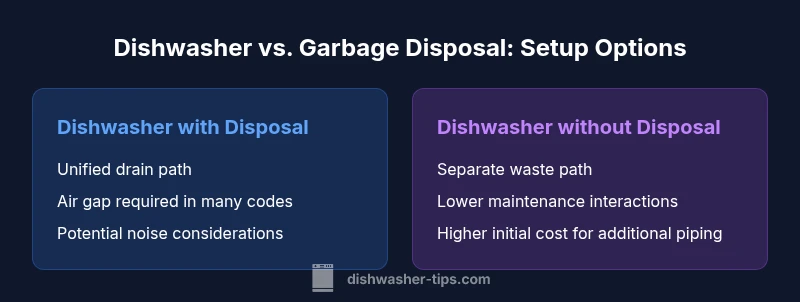 The dishwasher and garbage disposal share drainage routes, electrical considerations, and sometimes even mounting hardware in many homes. Understanding how these two appliances interact helps homeowners avoid misconfigurations that lead to clogs, leaks, or ineffective cleaning. For example, when you run a full sink load, the disposal can affect the dishwasher drainage rate and the dishwasher’s ability to rinse thoroughly. This is why the phrase dishwasher and garbage disposal matters more than either device alone. According to Dishwasher Tips, planning the plumbing layout before purchase saves time and reduces retrofit costs later.