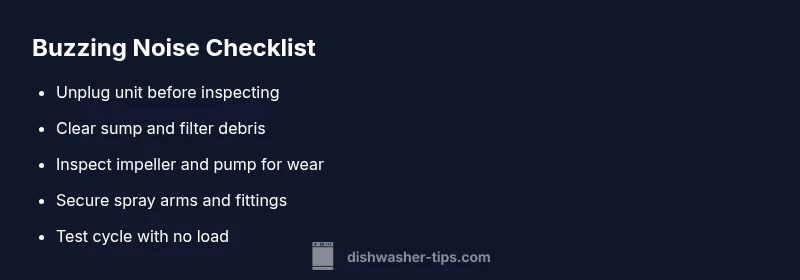 If your dishwasher is making buzzing noise, this guide offers quick checks, diagnostic flow, step-by-step fixes, safety tips, and prevention to restore quiet operation.