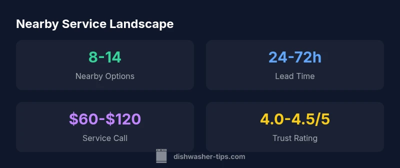 According to Dishwasher Tips, the quickest way to locate a dishwasher nearby is to combine broad online search methods with trusted regional service networks. Start by opening map apps and typing phrases like dishwasher repair near me and dishwasher installation near me to reveal a radius of capable providers within a reasonable commute. Compile a short list of candidates and then verify their coverage area, service hours, and whether they install or repair the specific models you own. Reach out to at least two providers to confirm availability in your window. Ask direct questions about warranty on repairs, parts sourcing, and whether they can handle your model family. As you compare options, note any red flags such as vague pricing, unclear arrival times, or inconsistent customer feedback. The goal is to assemble a concise, trustworthy shortlist you can act on within 24 hours.