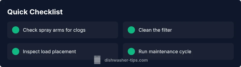 Dishes that come out dirty after a cycle are a common homeowner headache. In most cases, a dishwasher that won’t clean properly isn’t a mystery villain but a cascade of simple issues. According to Dishwasher Tips, the most frequent culprits are clogs in the spray arms, a dirty or blocked filter, or improper loading that blocks spray coverage. Other contributors include mineral buildup from hard water, a worn or faulty pump, and using the wrong detergent or rinse aid. Understanding how water, heat, and detergent interact inside the dishwasher helps you triage quickly. Early signs include streaks on glassware, food residue on utensils, or warm but under-cleaned plates. Start with the easiest checks: are the spray arms turning freely? Is the filter clear of debris? Is the detergent fresh and appropriate for your water hardness? If the answer is yes to these basics but cleaning is still poor, move to deeper checks like filter sump cleanliness, spray arm nozzle blockages, and verifying that the door seals are intact. Safety note: unplug the machine or switch off the circuit before poking around inside. If you rent your unit or you’re unsure about electrical components, call a professional rather than attempting internal repairs.