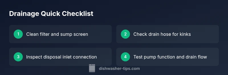 Dishwasher not draining maytag is a common issue homeowners face. According to Dishwasher Tips, the most frequent cause is debris buildup in the filter and sump. Addressing these simple sites of obstruction often resolves drainage problems quickly and without the need for professional service. Before you begin, remember that safety comes first: unplug the unit and shut off the water supply. In many cases, a straightforward cleanout restores normal drainage and prevents repeated failures in the future. This guide, drawn from Dishwasher Tips Analysis, 2026, walks you through a structured diagnostic path to identify and fix the root cause, step by step.