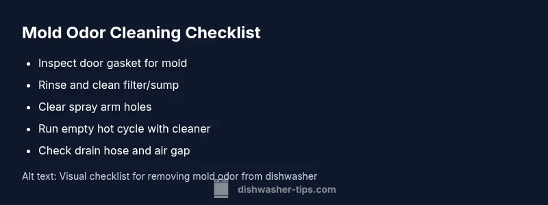 Dishwasher smells like mold is not just a nuisance—it's a sign of persistent moisture and biofilm forming in hidden corners. According to Dishwasher Tips, most mold-related odors originate in damp spots that stay wet after cycles: the door gasket, the filter housing, and the drainage path. Recognizing these hotspots helps you act quickly and prevent odors from returning. In many models, water can pool in corners of the tub, soap residue can create a cozy home for mildew, and a clogged filter amplifies odors as cycles finish. If you routinely leave dishes slightly damp, or skip routine cleaning of seals, the smell can become more noticeable in your kitchen. The good news is that a disciplined clean and a few maintenance habits can restore freshness without expensive parts replacement.